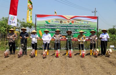 Polres Jombang Kolaborasi Tanam Jagung Serentak di Plosogenuk, Terhubung Virtual dengan Wapres RI dan Kapolri