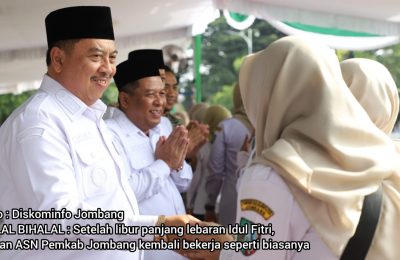 Awali Tugas Pasca Lebaran, Bupati Jombang Pimpin Apel Kerja dan Halal Bihalal Ribuan ASN