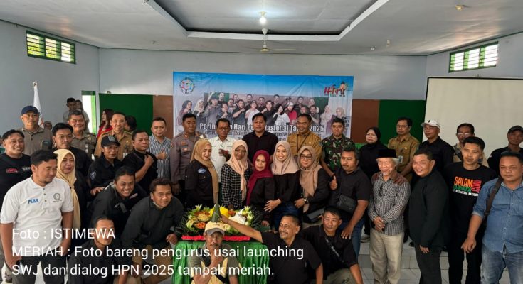 JOMBANG, MEDIA NUSANTARA.Com-Acara Launching dan Dialog Publik yang digelar komunitas Solidaritas Wartawan Kabupaten Jombang (SWJ) di Aula Gedung Perhutani, Senin (10/2/2025) berlangsung khidmat yang ditandai dengan pemotongan tumpeng.