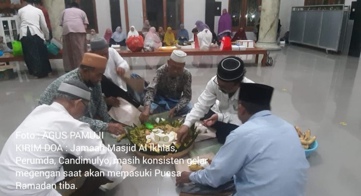 “Megengan ini sebenarnya sebuah istilah bahasa dari orang-orang jawa. Megengan itu diartikan kirim doa selamat bagi para leluhur, orang tua yang sudah meninggal, mendoakan para wali, guru-guru, sholawat nabi maupun hajat yang diinginkan. Doa ini ditandai dengan nasi tumpeng sebagai simbolis,” tutur warga kepada media ini yang minta namanya tidak ditulis yang ikut mengamini di acara doa bersama yang dihadiri sejumlah jamaah masjid, Kamis (27/2/2025).