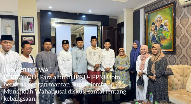 JOMBANG MEDIA NUSANTARA.Com- Sejumlah alumni Ikatan Pelajar Nahdlatul Ulama (IPNU) dan Ikatan Pelajar Putri Nahdlatul Ulama (IPPNU) bersama aktivis muda Nahdliyin sowan (berkunjung, red) ke kediaman mantan Bupati Jombang Nyai Hj Mundjidah Wahab di komplek Ponpes Tambak Beras, Jombang, kemarin. Kunjungan masih dalam suasana Idul Fitri 1 Syawal 1446 H ini merupakan bentuk silaturahmi serta penghormatan kepada salah satu tokoh perempuan Nahdlatul Ulama yang juga putri dari pendiri NU di tanah air, yakni KH Wahab Hasbullah.