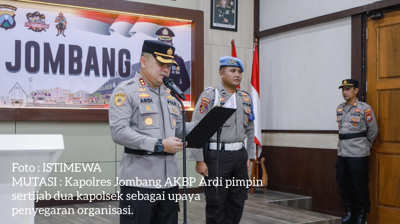 Dalam sambutannya, Kapolres Jombang AKBP Ardi menyampaikan ucapan selamat kepada para pejabat yang baru dilantik.