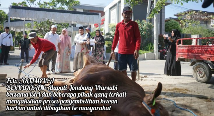 JOMBANG MEDIA NUSANTARA.Com-Dalam suasana penuh khidmat di Hari Raya Idul Adha 1446 H, Bupati Jombang H Warsubi bersama sang istri, Yuliati Nugrahani memulai rangkaian ibadah dengan menunaikan Salat Ied di Masjid Agung Baitul Mukminin, Alun-alun, Jumat (6/6/2025).