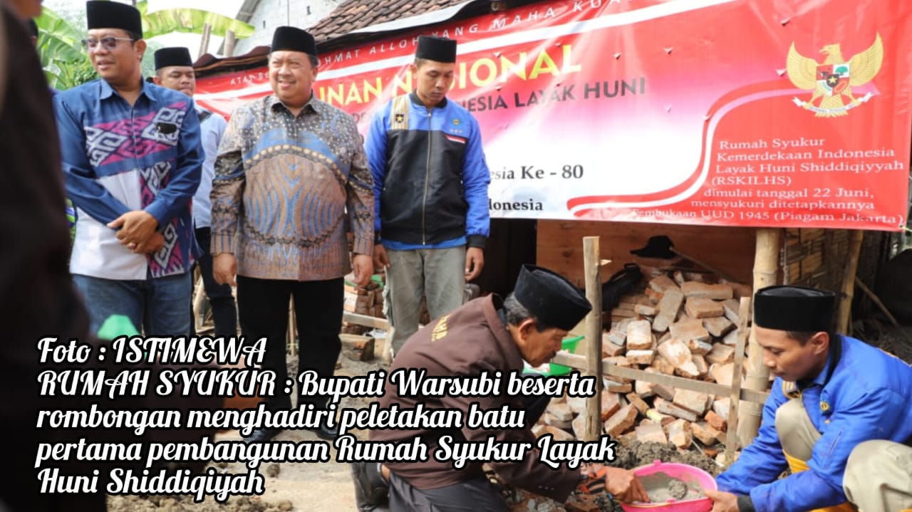 “Kami berharap program ini terus berlanjut dan menjangkau lebih banyak warga yang membutuhkan. Alhamdulillah juga tadi Abah Bupati Warsubi juga memberikan uswatun hasanah, dana motivasi untuk pembangunan rumah syukur layak huni ini,” ungkapnya.