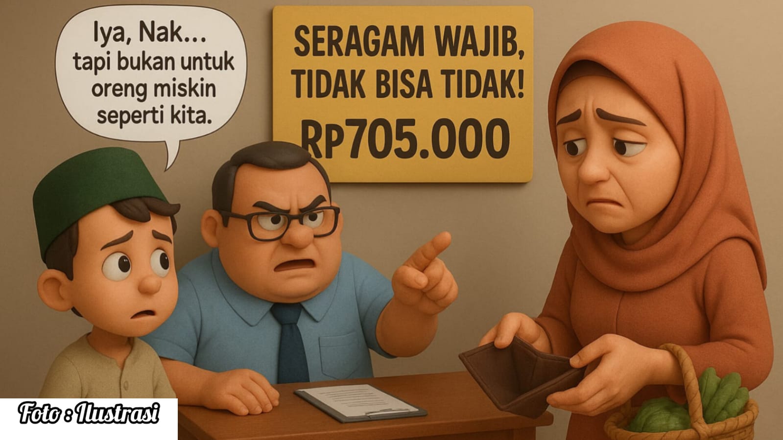 Pasalnya, pihak kepala sekolah di sekolah tersebut memberikan surat edaran (SE) kepada seluruh wali murid baru agar membeli seragam sekolah senilai Rp 705 ribu.