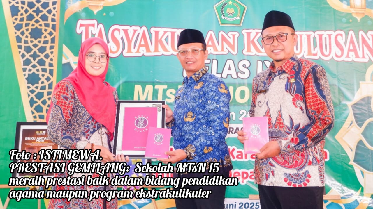 Prestasi dan inovasi berbagai program unggulan tersebut telah mengantarkan MTsN 15 Jombang meraih banyak prestasi, baik dari siswa maupun guru. Prestasi akademik, lomba keagamaan, karya tulis, olahraga, hingga inovasi pembelajaran menjadi bukti nyata kualitas pendidikan di madrasah ini,