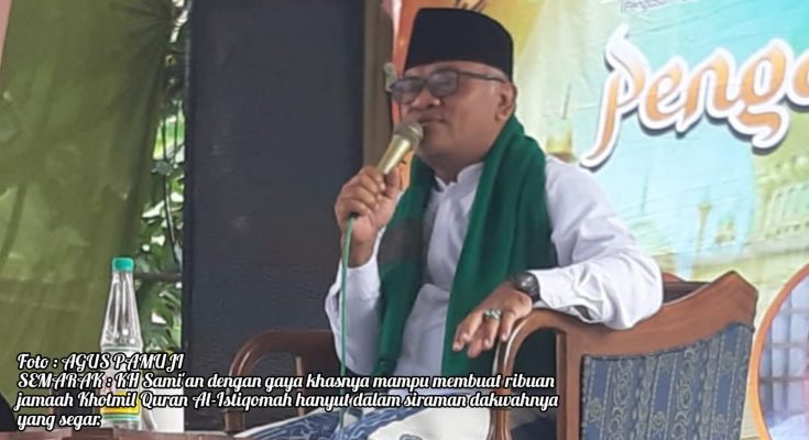 Dalam ceramahnya yang penuh makna ini, Sami’an berhasil menyita perhatian serius para hadirin hingga selesai acara ditutup doa oleh Abah Hasyim Jalaludin dari Candimulyo. (gus)