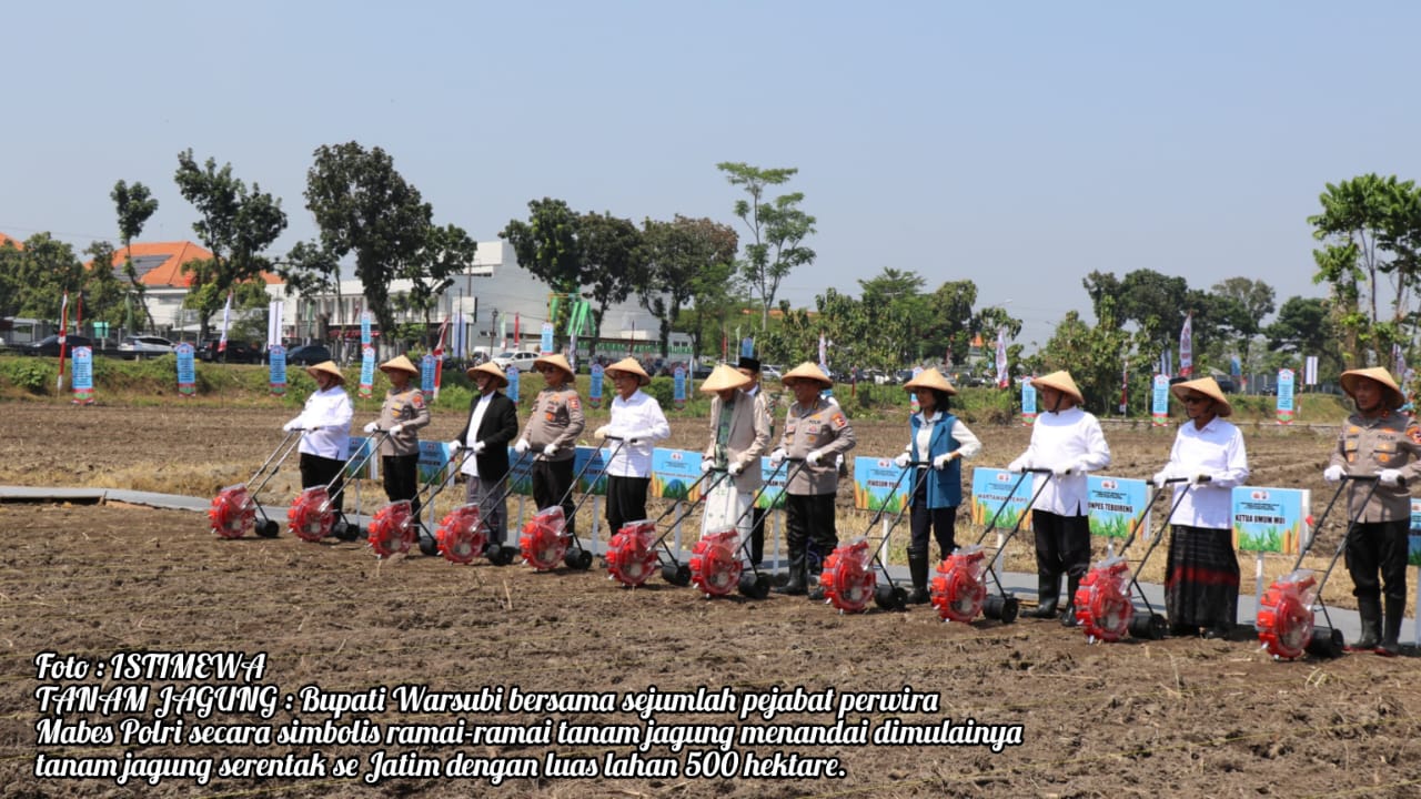 “Alhamdulillah hari ini kita sudah melakukan kegiatan tanam serentak jagung dengan berkolaborasi, bersinergi dengan seluruh pondok pesantren. Khususnya di Jawa Timur ada kurang lebih 264 pondok dengan luas tanah 500 hektare,” ujar Irwasum Polri, Komjen Pol. Dedi Prasetyo.