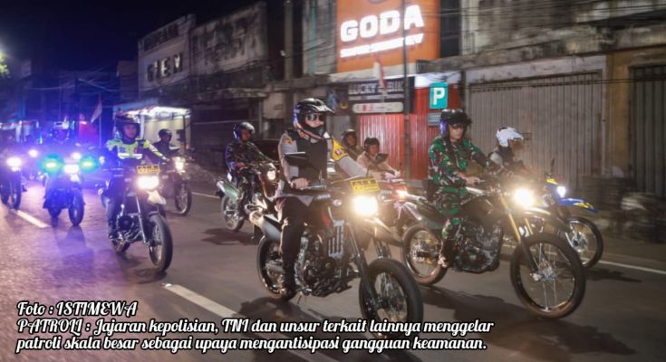 Kegiatan patroli ini melibatkan personel gabungan dari Polres Jombang, Kodim 0814 Jombang, Subdenpom Jombang, Satpol PP, Dinas Perhubungan dan instansi lainnya. Patroli dilaksanakan secara menyeluruh, menyasar lokasi-lokasi yang rawan gangguan kamtibmas seperti Obyek Vital, pusat keramaian, kawasan perbatasan serta daerah yang kerap dijadikan tempat nongkrong pada malam hari.