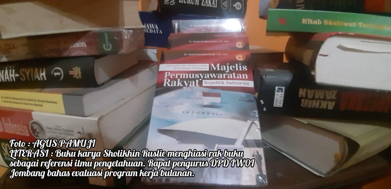 JOMBANG MEDIA NUSANTARA. Com – Pemerhati Kebijakan Publik, Hukum, dan Keadilan, Dr. H. Ahmad Sholikhin Ruslie, SH, MH, menghibahkan karyanya berjudul Dinamika dan Problematika Kedudukan Ketetapan MPR RI kepada DPD Ikatan Wartawan Online Indonesia (IWOI) Kabupaten Jombang, Jawa Timur.