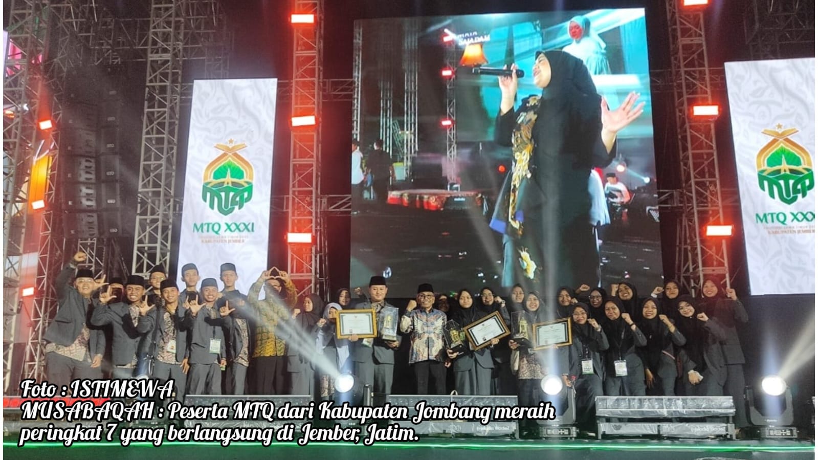 JOMBANG MEDIA NUSANTARA. Com– Kafilah Musabaqah Tilawatil Quran (MTQ) Kabupaten Jombang berhasil mencatatkan prestasi gemilang dengan menduduki peringkat ke -7 (tujuh) pada gelaran MTQ Ke XXXI (31) tingkat Provinsi Jawa Timur Tahun 2025 yang dilaksanakan 11–20 September 2025 di Kabupaten Jember
