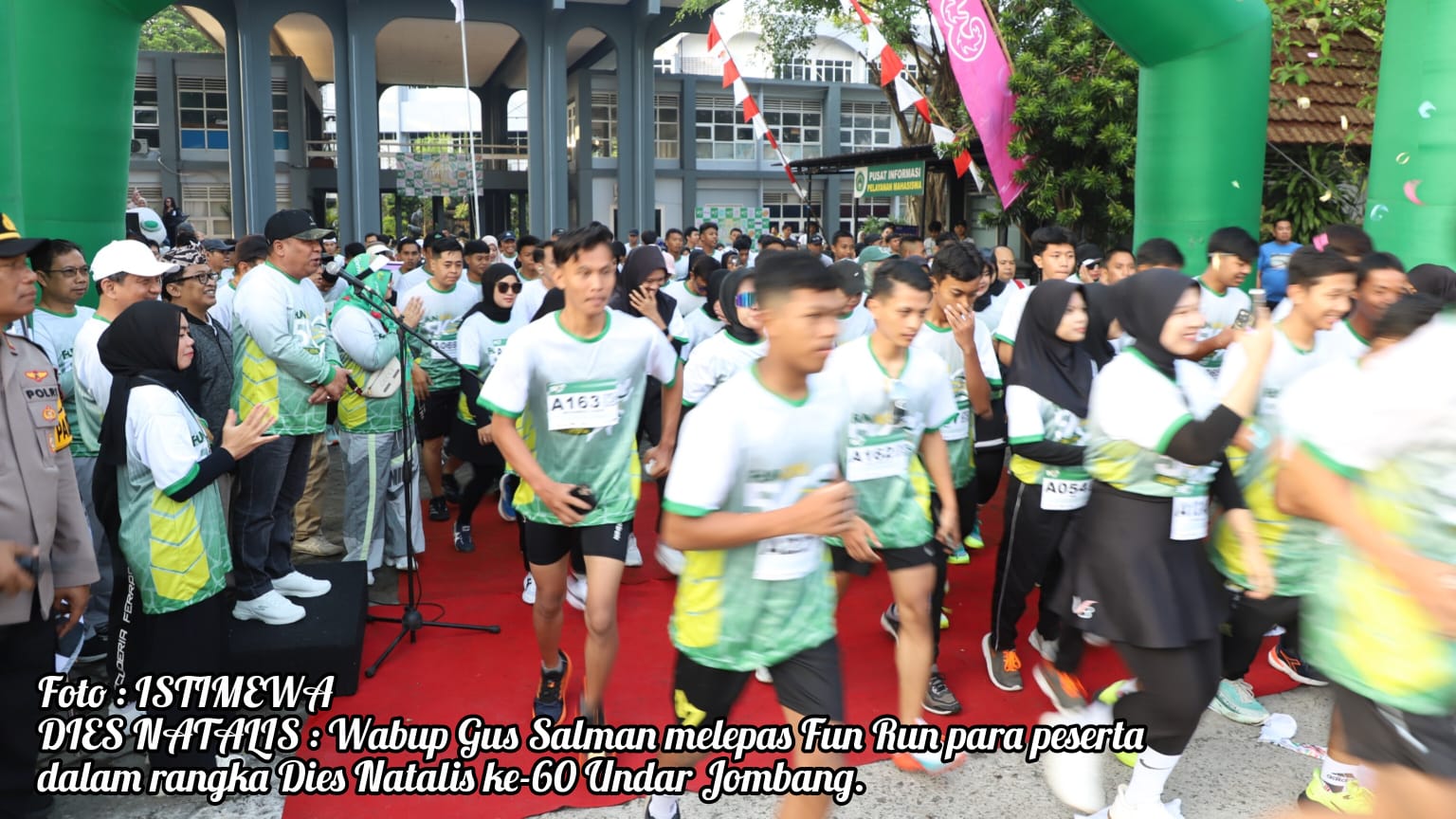 JOMBANG MEDIA NUSANTARA. Com– Wakil Bupati Jombang, Salmanudin, mewakili Bupati Jombang Warsubi, secara resmi memberangkatkan Fun Run 5K dalam rangka Dies Natalis ke-60 Universitas Darul ‘Ulum (Undar) Jombang. Acara yang berlangsung di halaman depan Kampus Undar Jombang, Minggu, 21 September 2025, ini menjadi momentum penting untuk mengajak masyarakat hidup sehat.