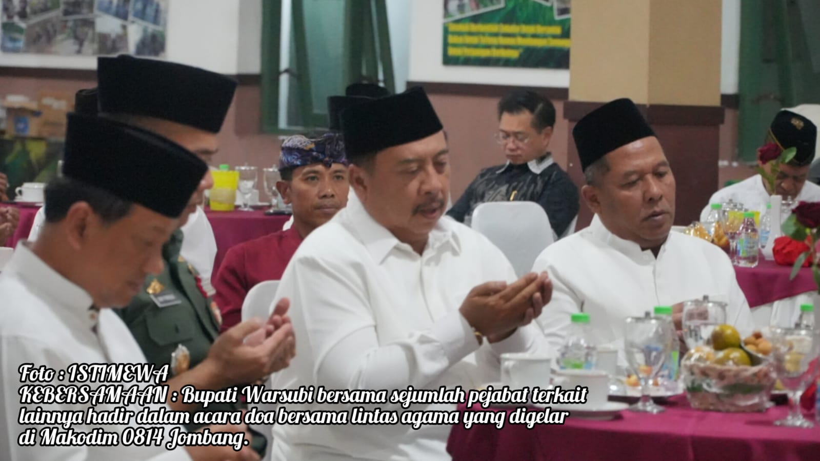 Bupati Jombang, Warsubi hadir langsung bersama Wakil Bupati Jombang Salmanudin, Forum Komunikasi Pimpinan Daerah (Forkopimda), Sekda Jombang Agus Purnomo, Kepala Kemenag Jombang H Muhajir juga mengundang pimpinan Pondok Pesantren, tokoh lintas agama, tokoh masyarakat, keluarga besar Kodim 0814 Jombang.