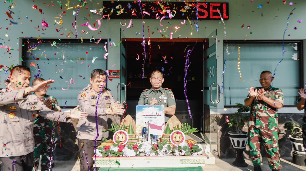 JOMBANG MEDIA NUSA-ANTARA. Com-Dalam rangka memperingati Hari Ulang Tahun (HUT) Tentara Nasional Indonesia (TNI) ke-80, Kapolres Jombang, AKBP Ardi Kurniawan, S.H., S.I.K., CPHR bersama Pejabat Utama mengunjungi Kodim 0814 Jombang dan Sat Radar 222 Ploso Jombang untuk memberikan kejutan dengan membawa tumpeng. Rabu (8/10/2025).