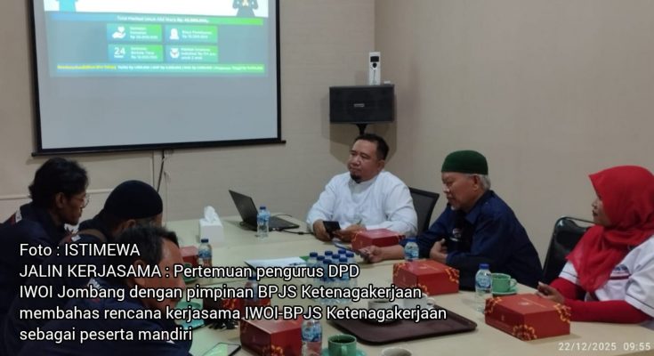 ​JOMBANG MEDIA NUSA-ANTARA. Com- Ikatan Wartawan Online Indonesia (IWOI) menggelar pertemuan strategis dengan BPJS Ketenagakerjaan (BPJSTK) Cabang Jombang guna membahas penguatan jaminan sosial bagi para jurnalis online. Langkah ini diambil sebagai respons terhadap tingginya risiko profesi wartawan di tengah dinamika transformasi digital yang pesat.