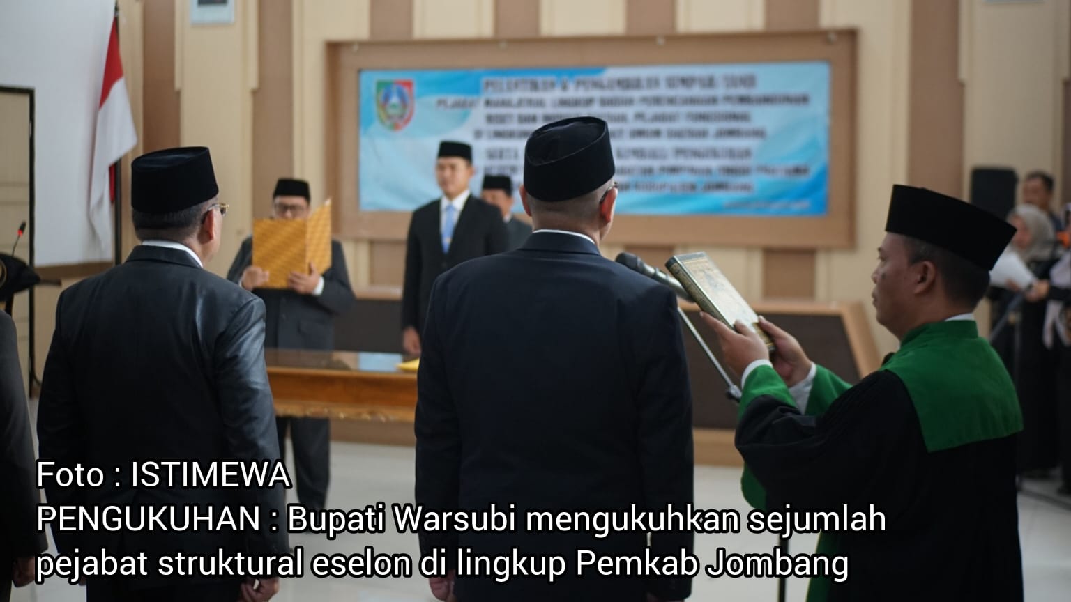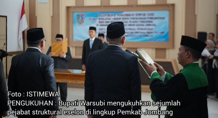 Bupati Jombang, Warsubi S.H., M.Si., memimpin langsung prosesi pelantikan terhadap 13 orang pejabat yang terdiri dari: