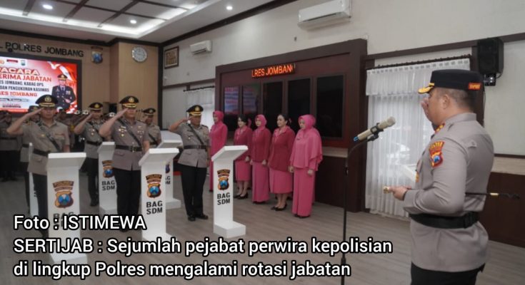 JOMBANG MEDIA NUSA–ANTARA. Com- Polres Jombang menggelar upacara serah terima jabatan (sertijab) Wakapolres, Kabagops, Kasat Lantas serta pengukuhan jabatan Kasiwas, Kamis (15/1/2026) pagi. Kegiatan berlangsung di Ruang Jombang Command Center Mapolres Jombang.
