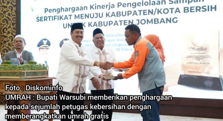 Acara ini diwarnai momen haru saat Bupati Jombang, Warsubi mengumumkan hadiah umrah bagi para petugas kebersihan.