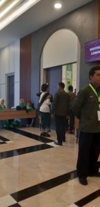 “Mohon maaf, tidak bisa masuk jika tidak memiliki kartu peliputan yang dibagikan panitia. Sebelumnya sudah ada pendataan nama dan media dalam rapat teknis. Di luar itu, tidak diperkenankan masuk,” ujarnya saat terjadi adu argumen ringan dengan wartawan di pintu masuk ruang acara.