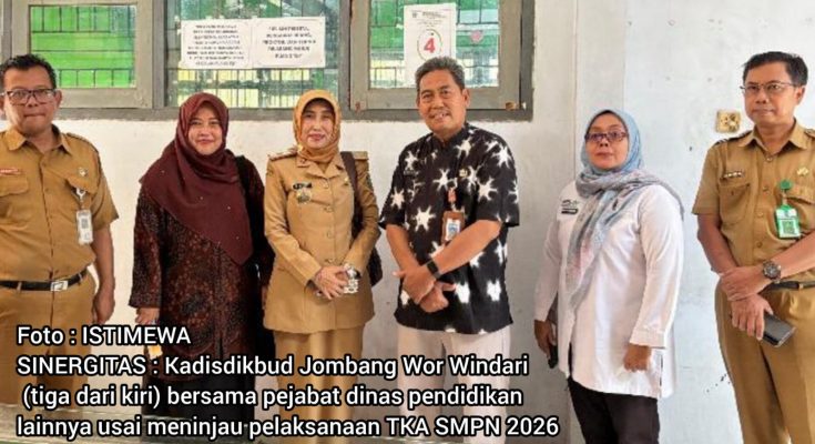 JOMBANG, MEDIA NUSA-ANTARA.com — Kepala Dinas Pendidikan dan Kebudayaan (Disdikbud) Kabupaten Jombang, Wor Windari, meninjau langsung pelaksanaan Tes Kemampuan Akademik (TKA) jenjang SMP Tahun 2026 di sejumlah sekolah, Senin (6/4/2026) pagi.