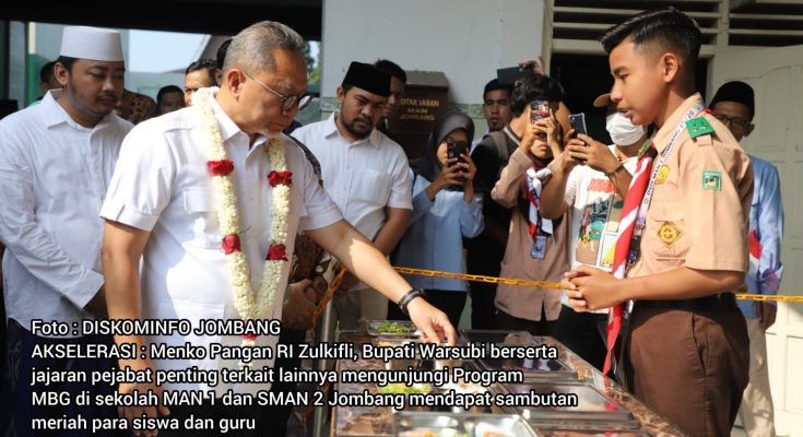 JOMBANG MEDIA NUSA-ANTARA. com- Menteri Koordinator Bidang Pangan RI, Dr. H. Zulkifli Hasan, S.E., M.M., bersama Bupati Jombang, Warsubi, S.H., M.Si., meninjau langsung implementasi Program Makan Bergizi Gratis (MBG) di sejumlah satuan pendidikan di Kabupaten Jombang, Jumat (10/04/2026) pagi.