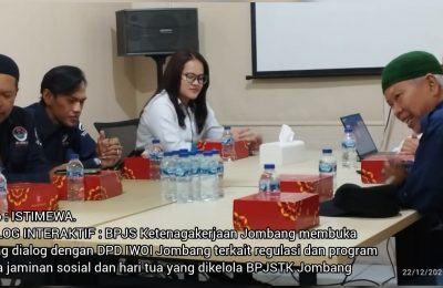 JOMBANG MEDIA NUSA-ANTARA. Com- Ikatan Wartawan Online Indonesia (IWOI) menggelar pertemuan strategis dengan BPJS Ketenagakerjaan (BPJSTK) Cabang Jombang guna...