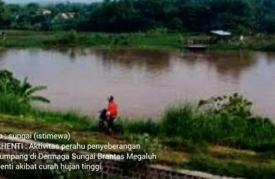Debit Sungai Brantas Tinggi, Aktivitas Perahu Penyeberangan Penumpang di Megaluh Terhenti